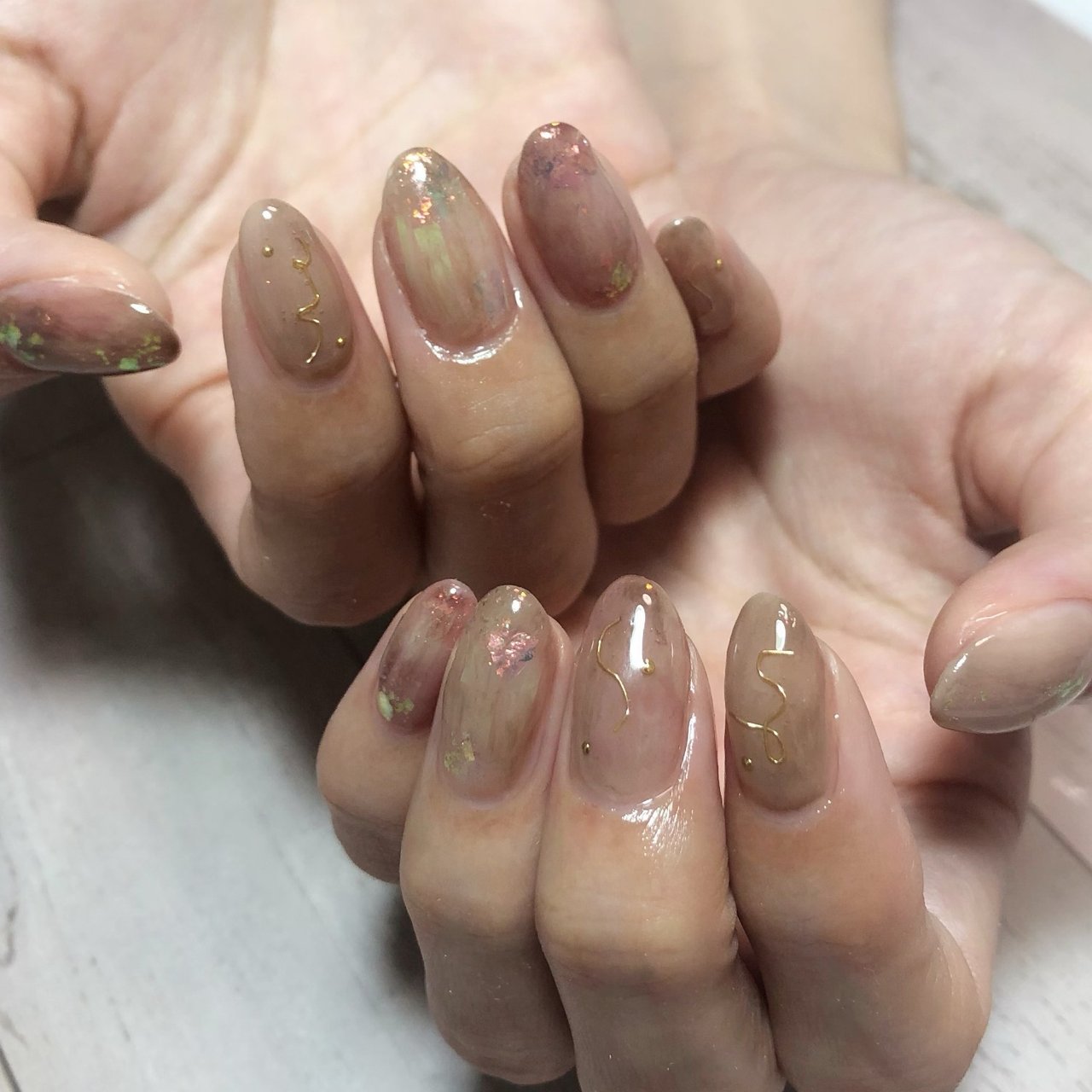 都島ネイル グレージュと金箔べっ甲アートで結婚式参列ネイル 大阪市