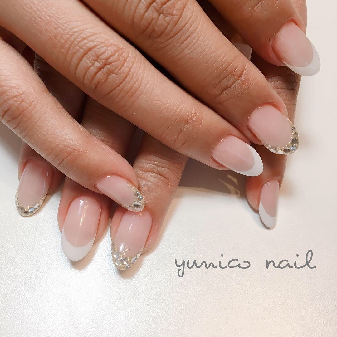 オールシーズン ハンド フレンチ ラメ ビジュー Yunico Nail ユニコ